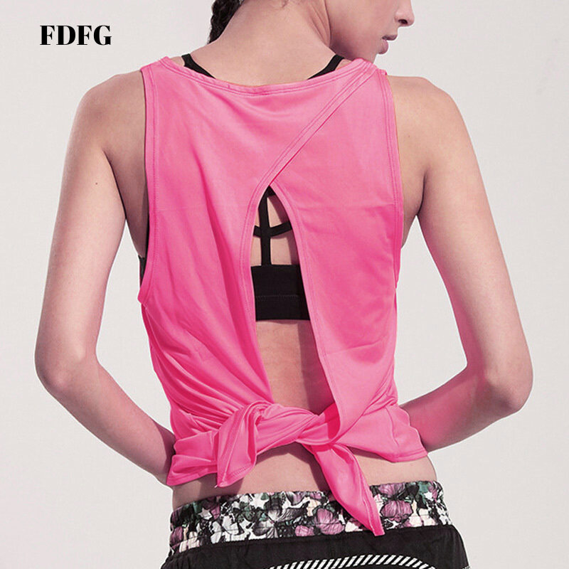 FDFG 【READY STOCK】Women Yoga Vest T-shirt Hollow Back Sports Fitness Tank Top Yoga Running Gym Jogging Vest Tops