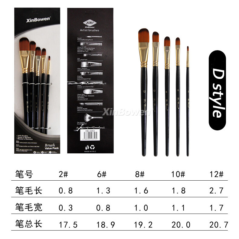 DUKEEN 5 Pcs/Set Professional Nylon Hair Oil Paint Brush Set Round Drawing Brush Acrylic DIY Watercolor Pen for Artists Painting