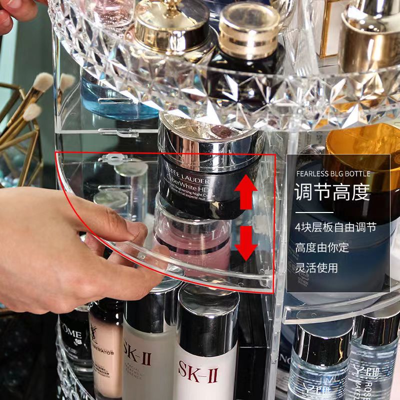 【Ready Stock& 2022 New】360° Rotating Make Up Jewelry Organiser Acrylic Beauty Cosmetic Brush Storage Height Adjustable with Jewelry Rack 360° Rotating Acrylic Makeup Organiser Clear Cosmetics Holder S