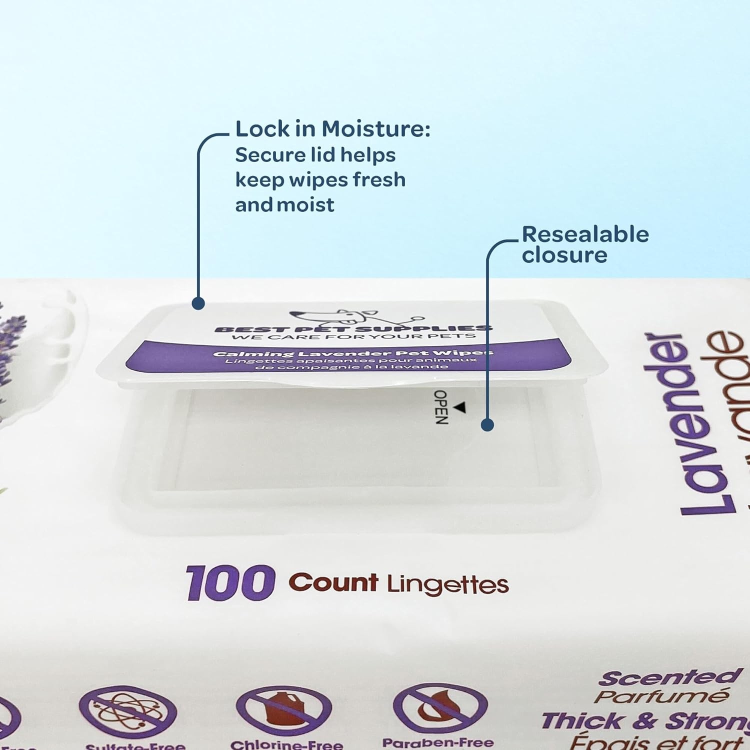 Best Pet Supplies 8" x 9" Pet Grooming Wipes for Dogs & Cats, Plant-Based Deodorizer for Coats & Dry, Itchy, or Sensitive Skin, Clean Ears, Paws, & Butt - Calming Lavender, 100 Count (Pack of 1)