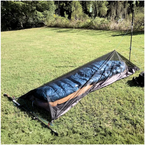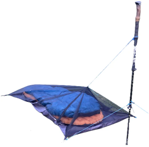 The Brisa Bivy is designed to clip onto the built-in tethers of your ANDA tarp to secure your sleeping system in windy or wet weather. In clear weather, the Brisa Bivy can be used on its own. Secure the Brisa Bivy with the shock cords attached to the corner tethers to prevent your UL pillow from blowing away in the middle of the night. (Trust me, it happens.)