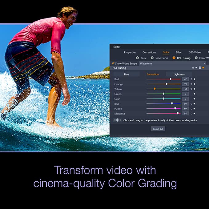 Pro-caliber power: Transform video projects with full Color Grading controls, frame-accurate Video Masking, and Motion Tracking tools